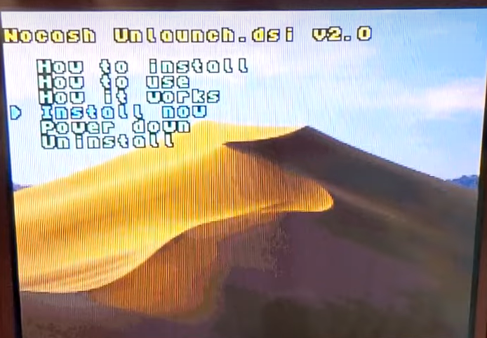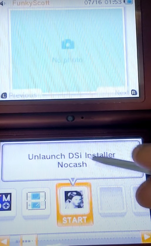 > 아래화면이 나오면 Unlaunch DSi installer Nocash 를 선택해 터치한다.
