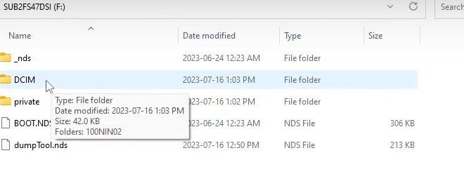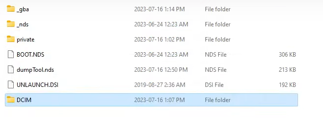 DT304D03xxxxxxx 처럼 긴 숫자폴더가 나온다. (이는 DSi 기기 마다 다를수있다)
