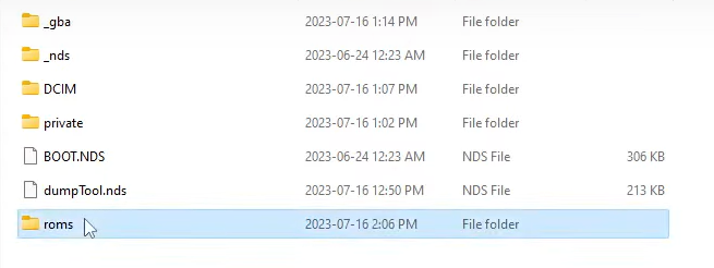 >SD카드 최상위에 ROM 폴더 를 만들고 그 폴더안에 NDS ,GBA 등 본인이 넣고싶은 폴더를 만든다.