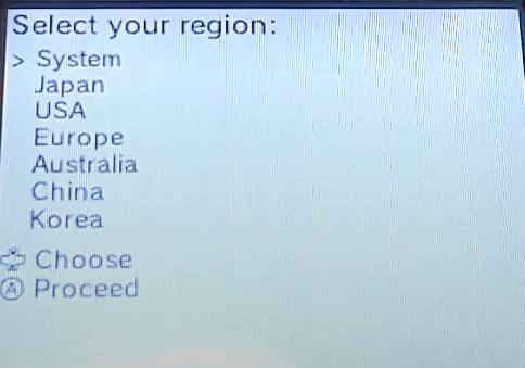 > 본인의 DSi 본체 국가를 선택하고 A버튼 누른다.