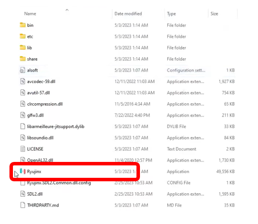 아래 표시된 Ryujinx 실행파일을 클릭한다.
