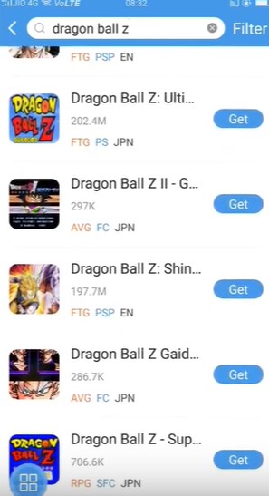 예를들어 Dragonball z 를 검색하면 관련 에뮬게임이 쭉~ 뜨게된다.